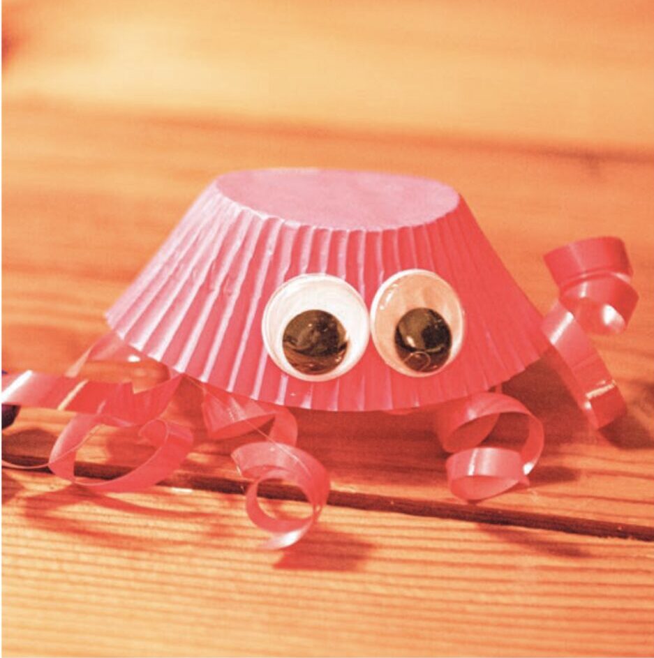 Glue the googly eyes to the outside of the cupcake wrapper.