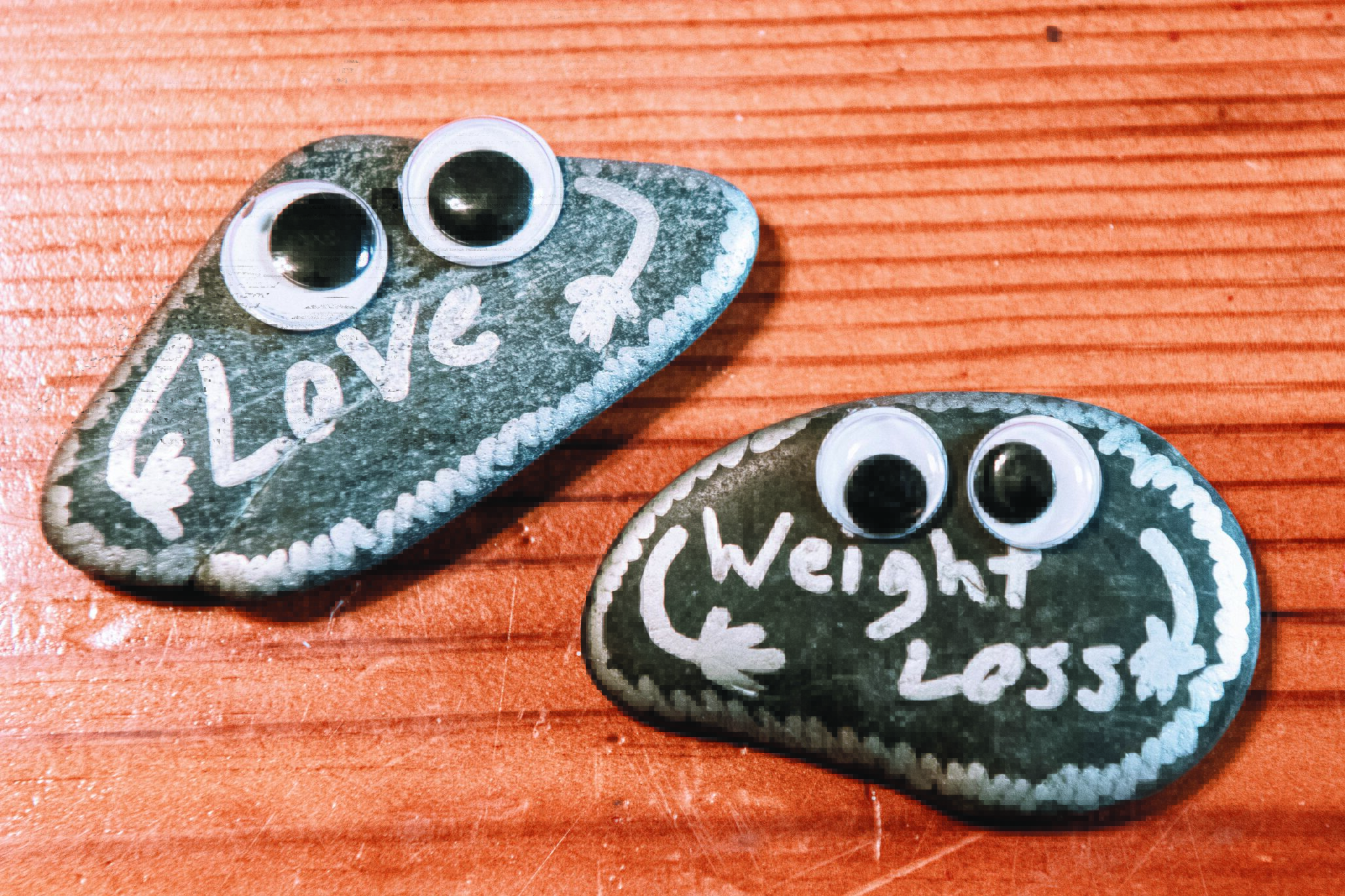 Glue the googly eyes to the rock.