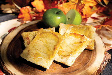 Place the puff pastry rectangle on top of the apples, brie and honey.