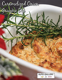 Serve the caramelized onion and Gruyère dip warm with your choice of dippers, such as bread, crackers or vegetable sticks.