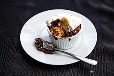 Top each cake with banana whipped cream and serve.