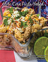 Add fire roasted corn, jalapeño, red onion, cilantro and Cotija cheese to the pasta and mix well.