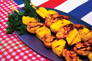 Thread the shrimp and pineapple onto the skewers, alternating between the two.