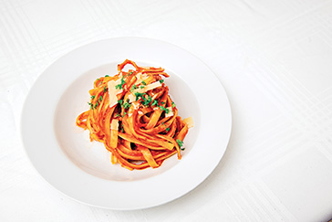 Cover the pot to allow it to finish cooking and to allow the pasta to absorb some of the sauce – about 3 minutes.